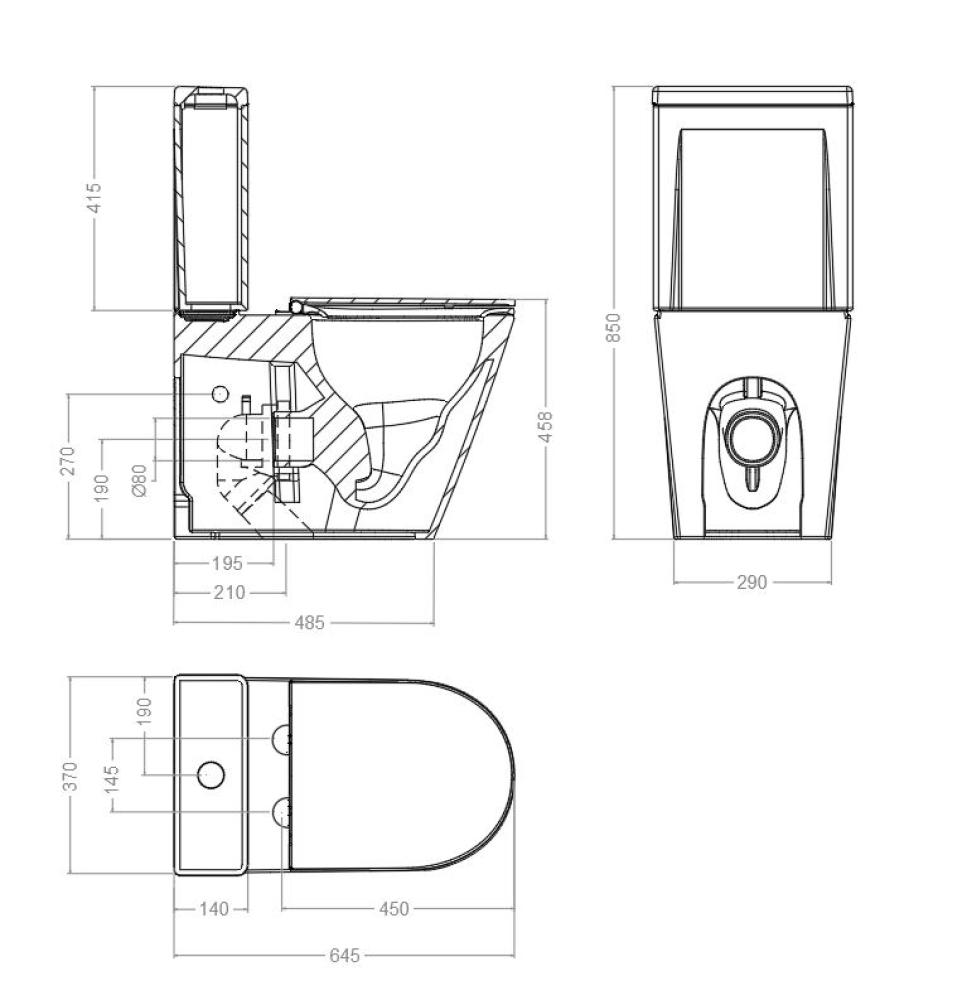 Taza salida dual con juego de fijación, codo de evacuación y sistema Rimless.