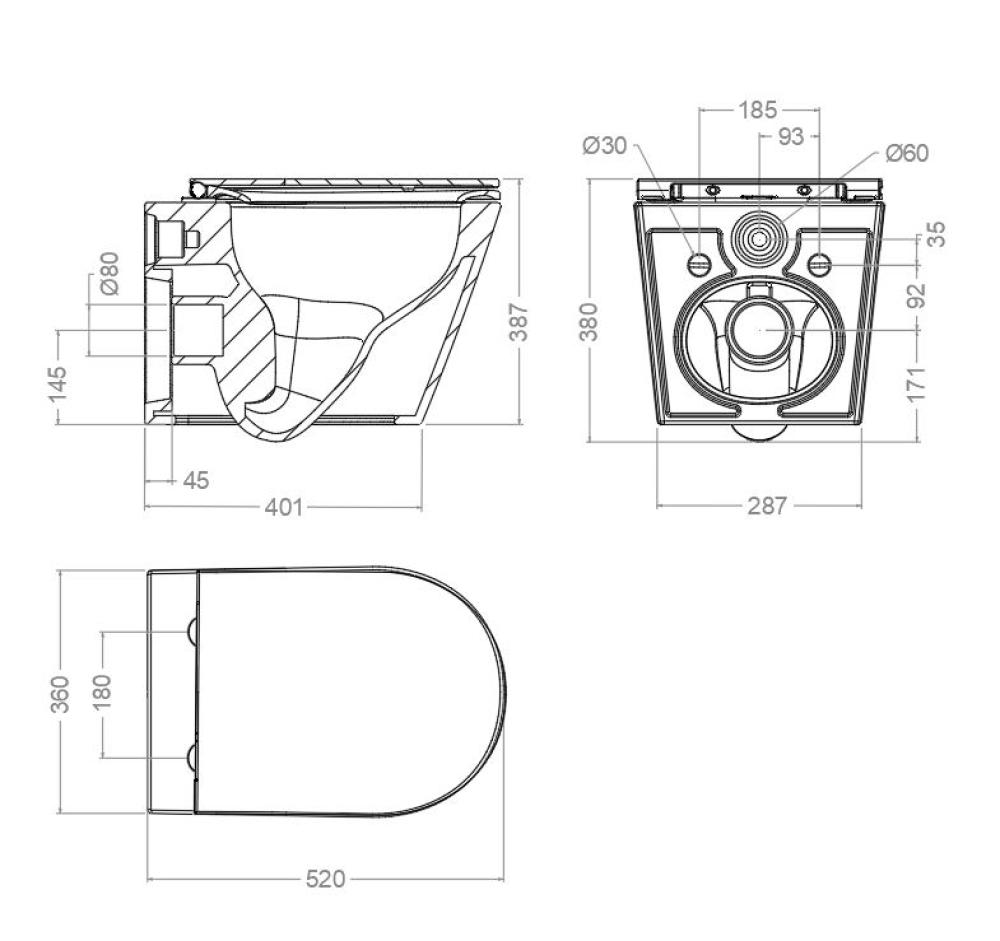 Taza salida dual con juego de fijación, codo de evacuación y sistema Rimless.