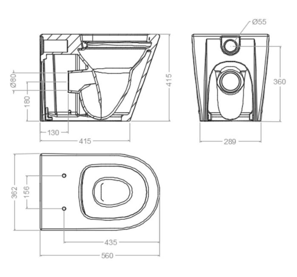 Taza salida dual con juego de fijación, codo de evacuación y sistema Rimless.