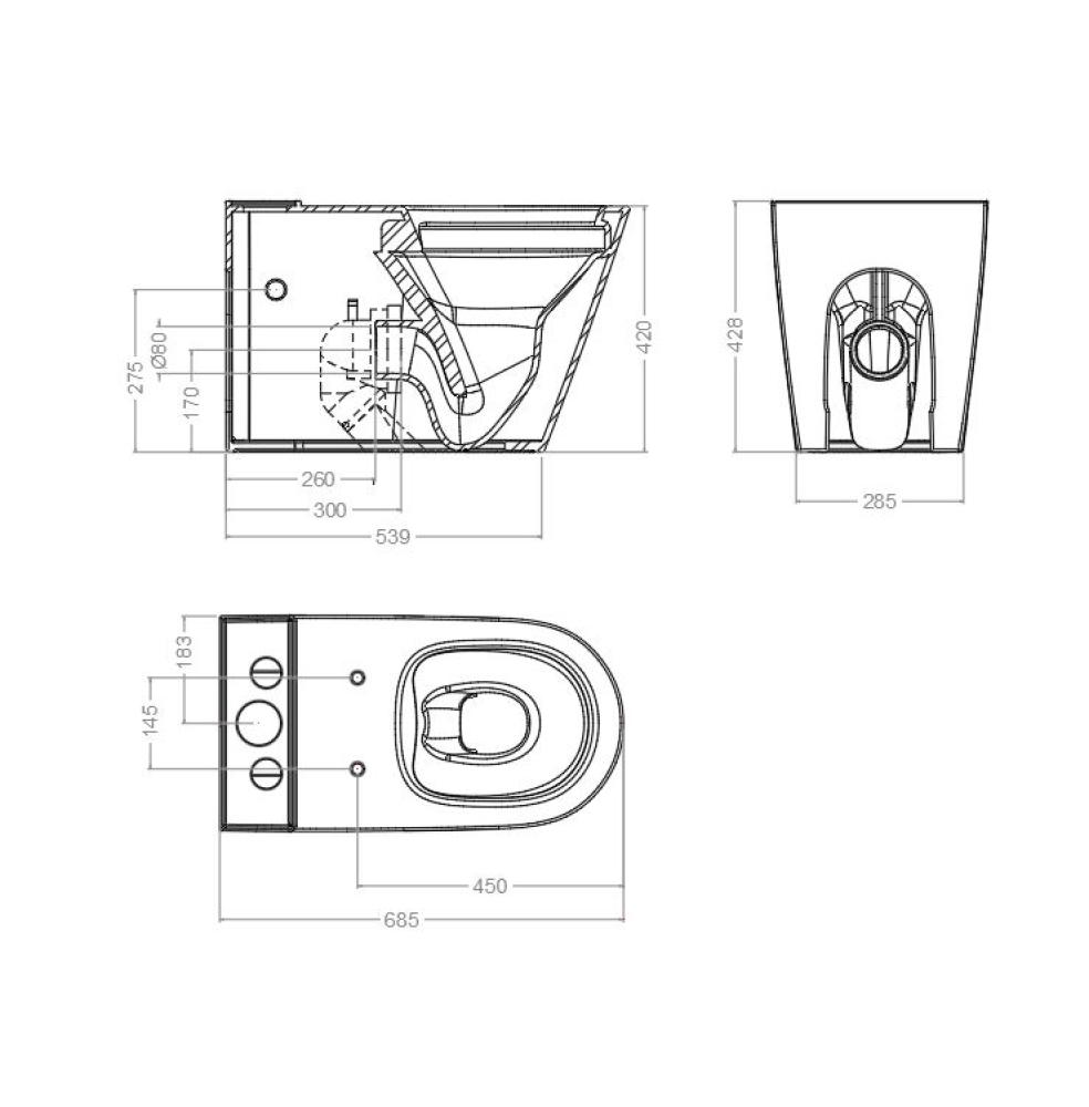 Taza salida dual con juego de fijación, codo de evacuación y sistema Rimless.