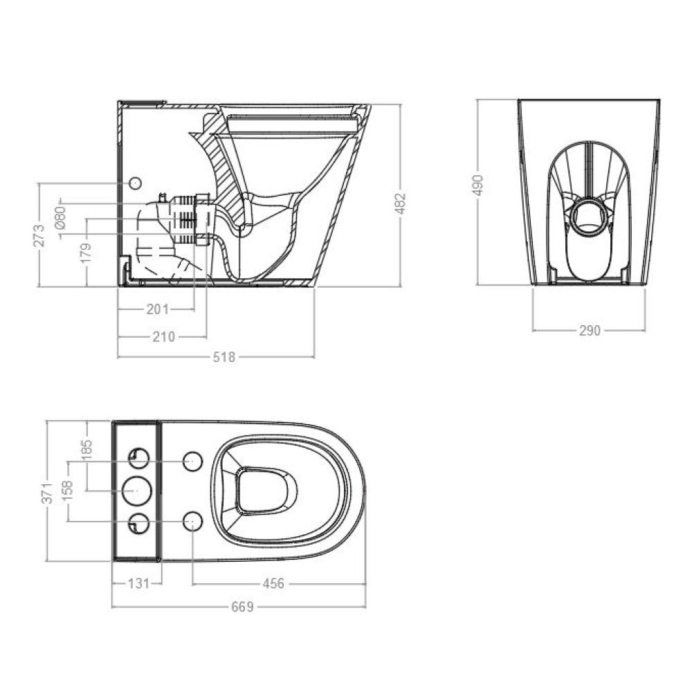 Taza salida dual con juego de fijación, codo de evacuación y sistema Rimless.