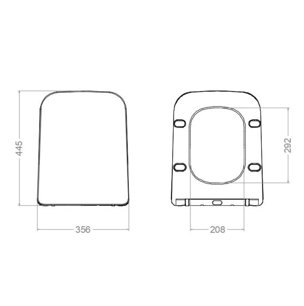 Asiento y tapa amortiguada Alma, bisagras y sistema Clip Off.