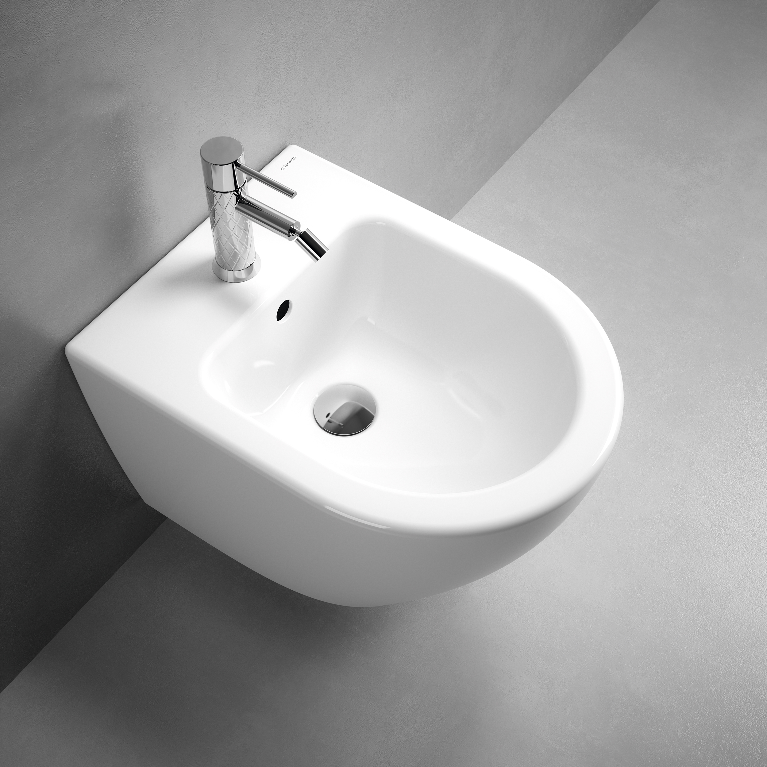 Bidé suspendido Doria con un orificio para grifería y con juego de fijación oculta.
