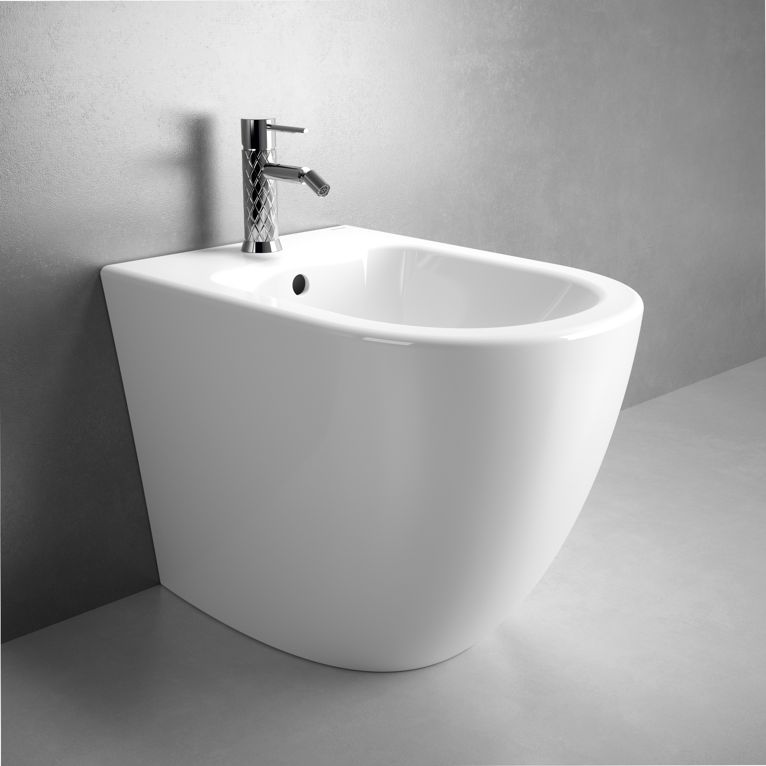 Bidé adosado a pared Doria con un orificio para grifería y con juego de fijación oculta.